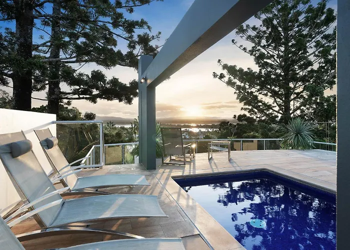 Tijdens je verblijf in dit vakantiehuis, ben je binnen 3 km van de Poorten van de Hel en op een korte afstand van Noosa Junction. Deze villa bevindt zich ook binnen 9 minuten lopen van de Hastings Street. June - Noosa Heads villa biedt gemakkelijke toegang tot natuurlijke wonderen zoals het Noosa Spit Recreation Reserve (2 km) en Sunshine Beach (2,1 km).